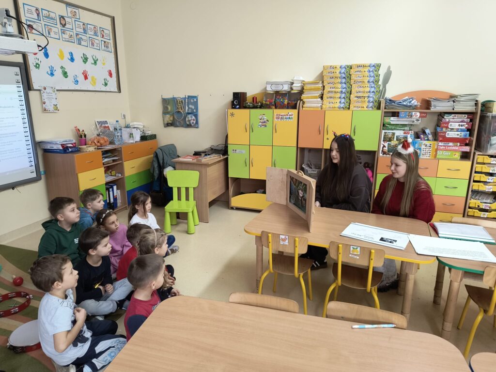 Ponieważ „Praktyk” mieści się w tym samym budynku co szkoła podstawowa, w okresie przedświątecznym szczególną uwagę poświęcamy również najmłodszym uczniom. W ramach działań integracyjnych odwiedzamy oddziały zerowe oraz świetlice, gdzie nasi uczniowie prezentują świąteczne opowieści w formie teatrzyku Kamishibai.